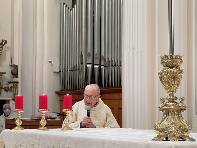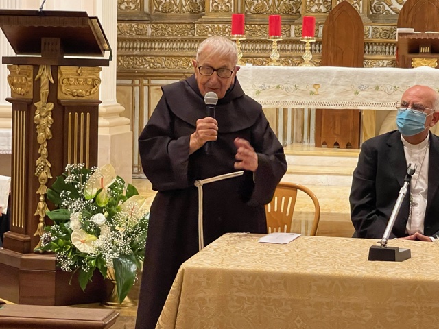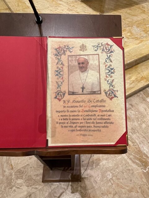 La vigilia della Ss. Trinità il nostro fra Maurilio De Cataldo della Fraternità di Francavilla Fontana, ha festeggiato il suo 90mo compleanno. Al rituale taglio di torta ha fatto seguito la mensa eucaristica presieduta dal nostro fratello vescovo, fra Angelo Massafra, Arcivescovo Metropolita di Scutari-Pult, cui hanno preso parte molti confratelli giunti da diverse parti della Provincia e molti amici ed ex allievi che si sono trattenuti per la presentazione del suo ultimo libro “Ai confini dell’anima” che raccoglie ed espone uno spaccato dell’animo di fra Maurilio. A lui rinnoviamo il nostro più sincero augurio di ogni bene.