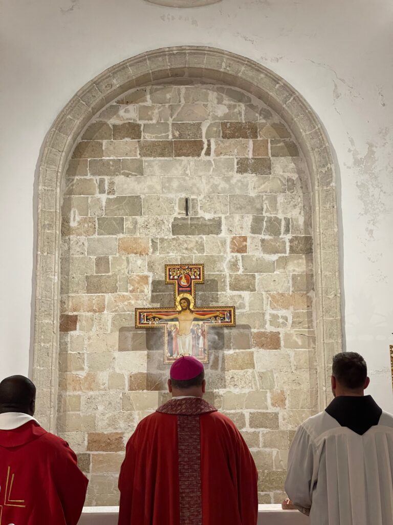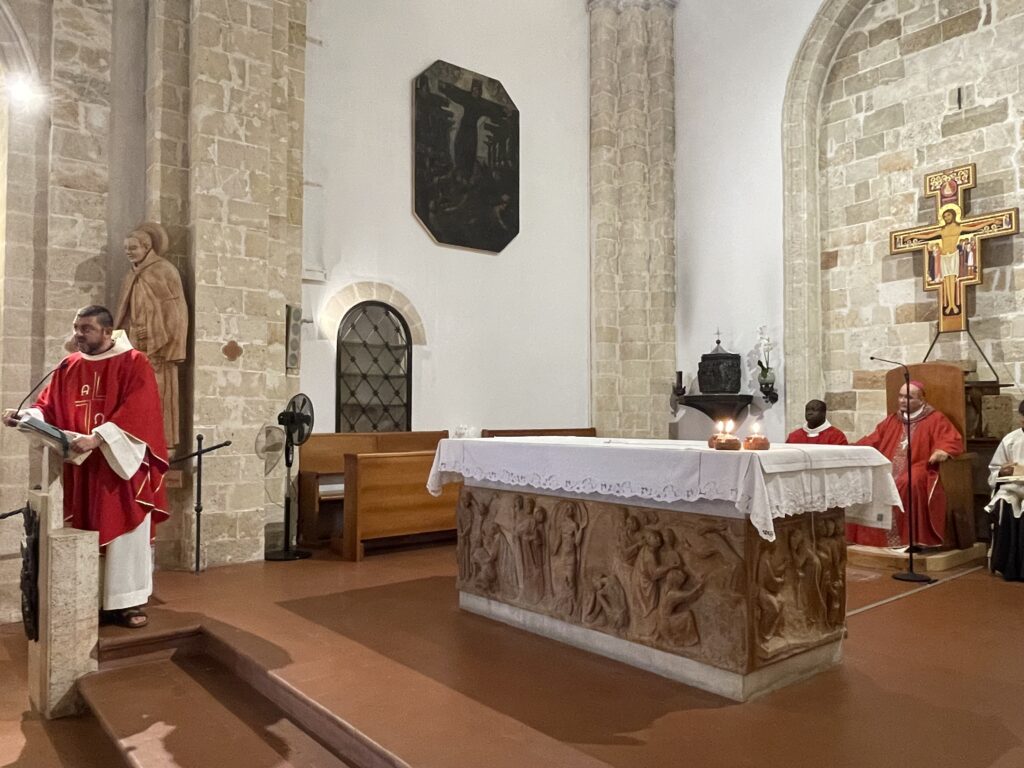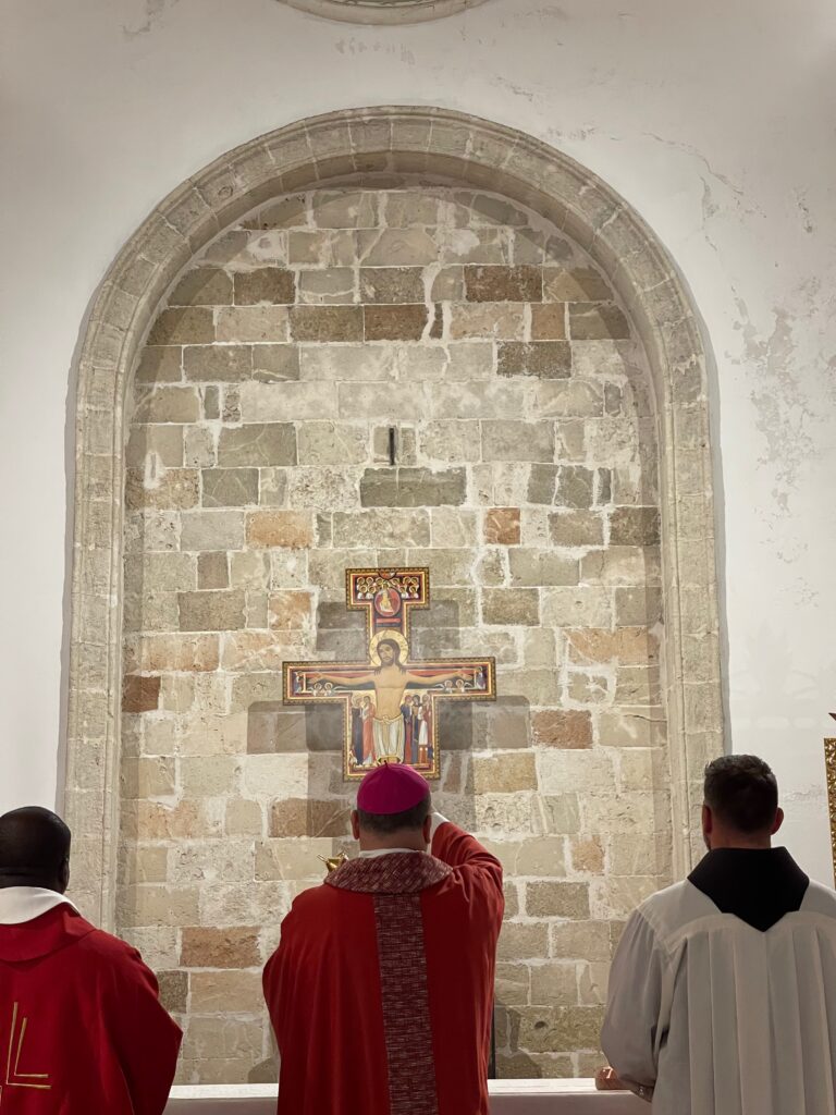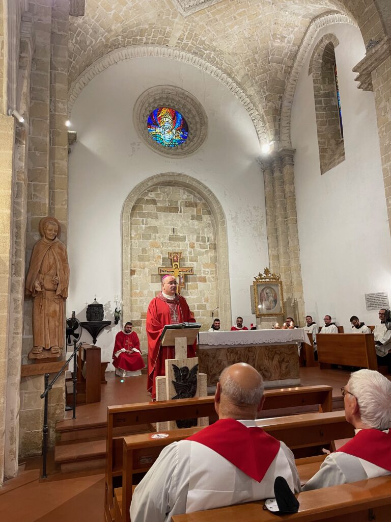 Al termine della celebrazione la Fraternità ha fatto dono al vescovo di una Mitria mariana a motivo della comune appartenenza a due Province religiose intitolate alla Vergine Maria, ma anche con la simbolica tratta dalle decorazioni della chiesetta della Porziuncola in Santa Maria degli Angeli (Assisi), culla del nostro Ordine.