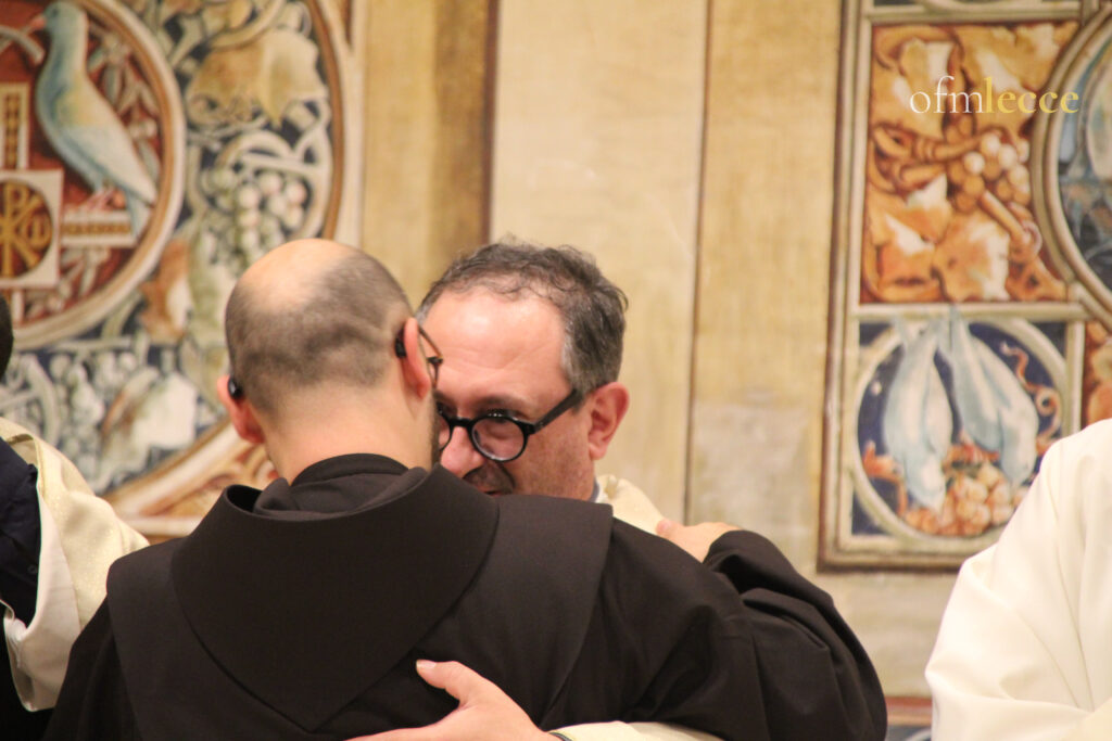 Nell’omelia, il Ministro Provinciale, fra Massimo Tunno, ha offerto una riflessione profonda e paterna, partendo dall’immagine biblica di Mosè sul colle, che teneva le mani alzate per sostenere il suo popolo in battaglia. «Ricordatevi sempre di alzare le vostre mani», ha detto rivolgendosi a Daniele e Tony, «per chiedere l’aiuto di Dio, per intercedere per gli altri e per voi stessi. Fatevi aiutare, aiutate e aiutatevi ad alzare le mani, perché non ci salviamo da soli». Un monito potente che lega indissolubilmente la vita consacrata alla preghiera personale e all’importantissimo sostegno della fraternità.