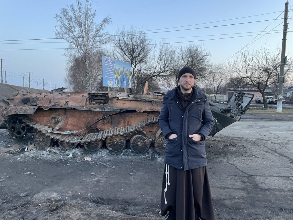 Quelle stesse parole ci permettono di evocare lo sgomento con cui i nostri confratelli vivono e operano in questo recente, drammatico teatro di guerra. Le parole di fra Romuald, parroco del convento di Konotop, descrivono nel dettaglio uno scenario che nessuno pensava possibile fino a pochi giorni fa. Le strade della vita quotidiana diventate campo di battaglia, i mezzi civili e militari dati alle fiamme, le numerose vittime sparse per la città. E poi la disperazione, insediata nel cuore della popolazione alla consapevolezza che la città non era più sotto il controllo dell’esercito ucraino.